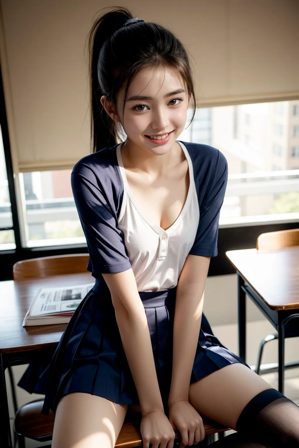 「人気急上昇」 学制服のAI生成作品